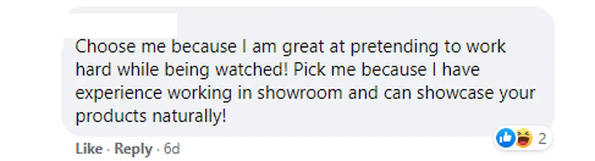 “选我吧,因为我很擅长在被人盯着的时候假装努力工作!” (你确定老板看了这条留言后,不会从此盯上你?)