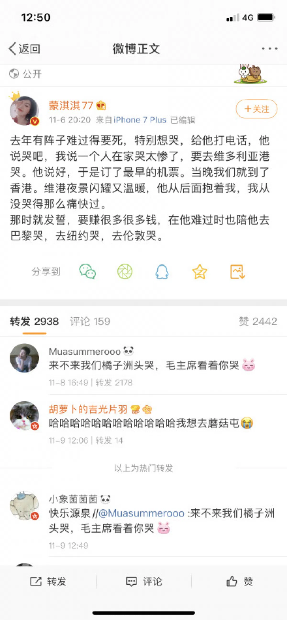 在凡尔赛文学和凡尔赛人还没刷屏时,豆瓣早在今年五月就有了“凡尔赛学研习小组”,研习“凡言凡语”,但真正让“凡学”走向大众的却是“蒙淇淇77”,她认真地实践着凡学理论,把玛丽苏式爱情和物质炫耀完美糅合: