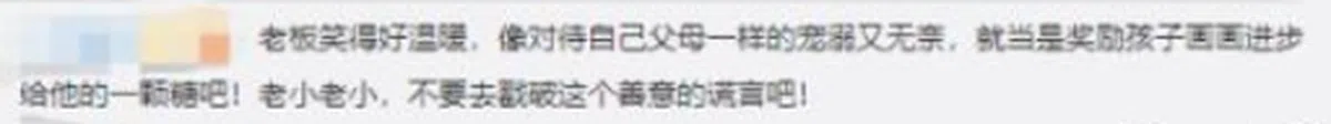 不少网友为李老板地这个暖心举动点赞,也希望他别去戳破这个善意的谎言。