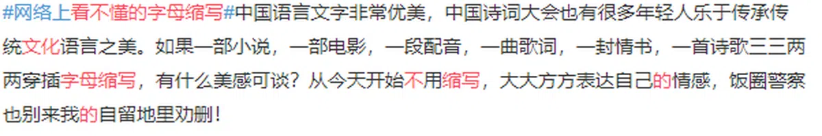 认为缩写减少了中华文化,博大精深的美感......