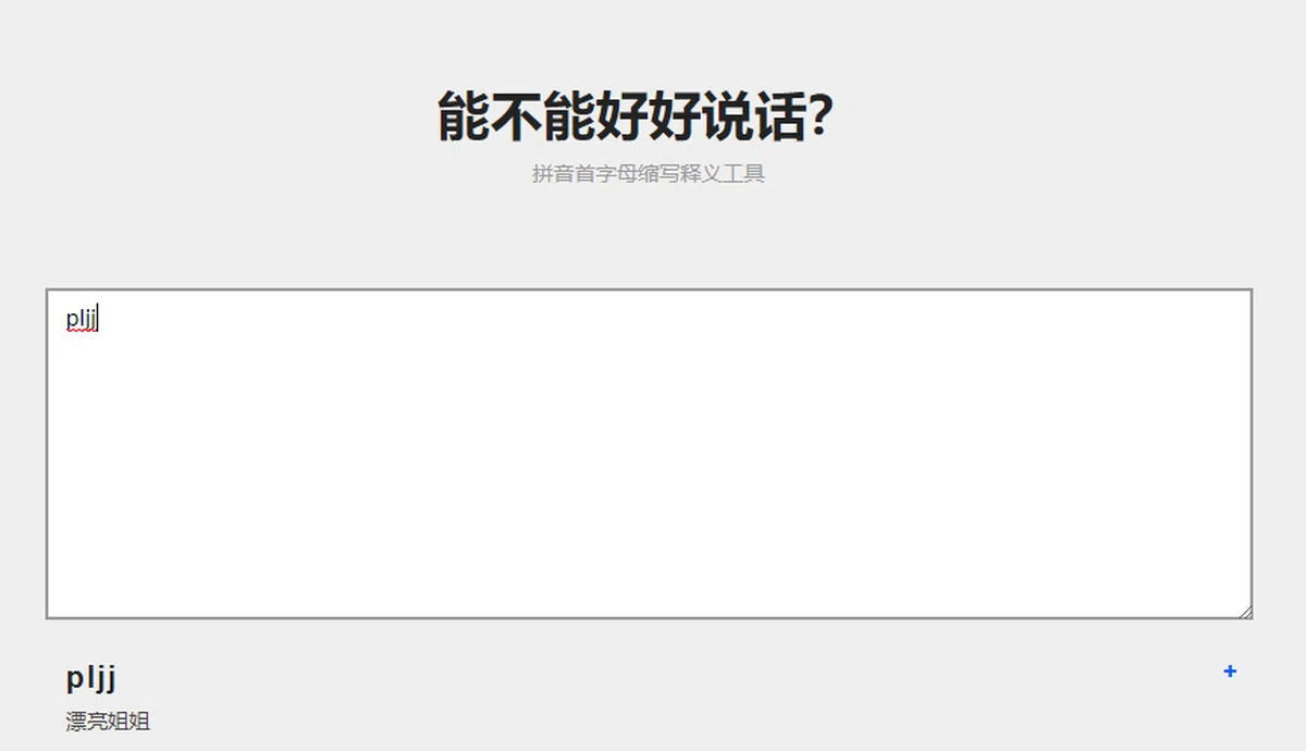非深度网民、坚持中华文化的网民以及看不懂缩写还想看八卦的网民求生欲可以说是非常强了。已经有人发明了“能不能好好说话”这个字典网站,打缩写就能帮你翻译出是什么意思: