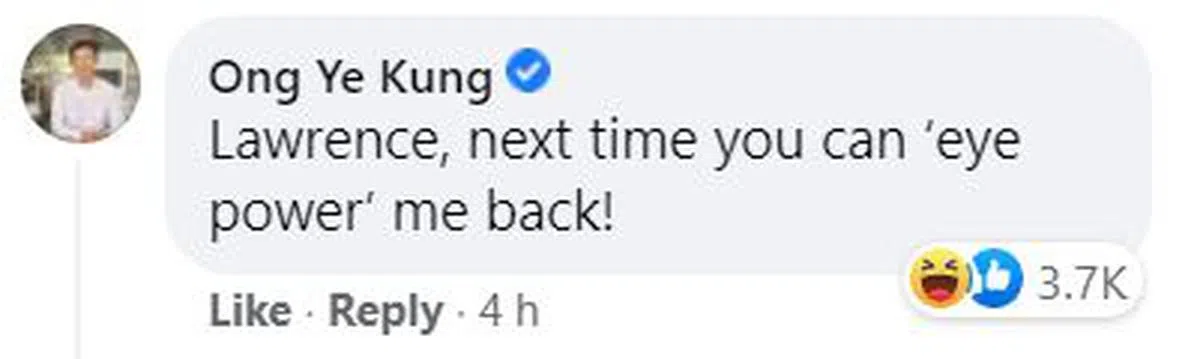 王乙康也在贴文下留言向黄循财幽默喊话:哥儿们,一人一次嘛。
