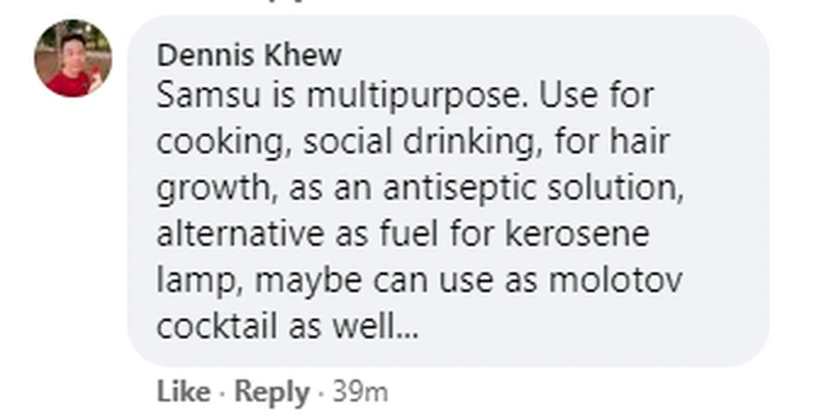 网上有关Samsu这类酒的资料不太多。有网民尝试到谷歌寻找有关Samsu的资料,结果意外发现本地有一个人与这个酒同名同姓。