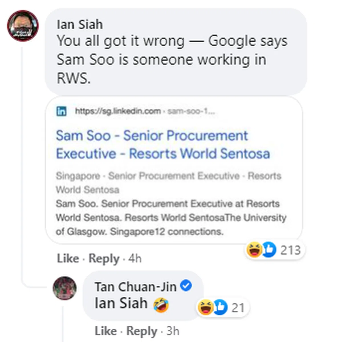 叫Sam,姓Soo的他目前就职于圣淘沙名胜世界高级采购主管。(瞬间红了,哈哈哈)