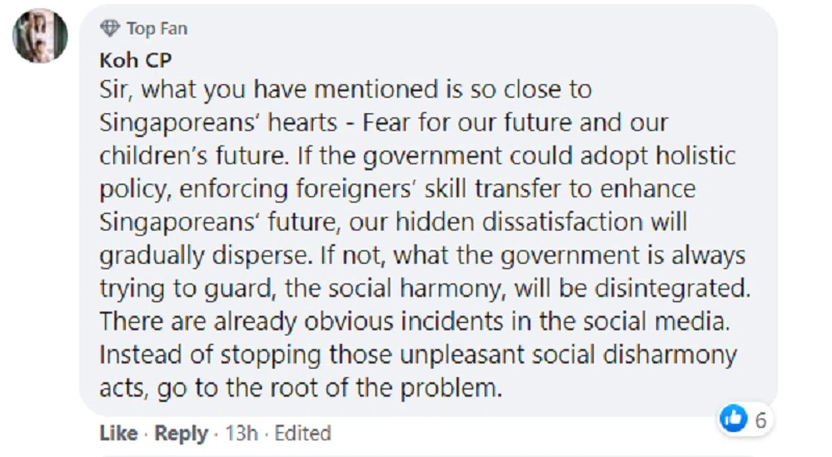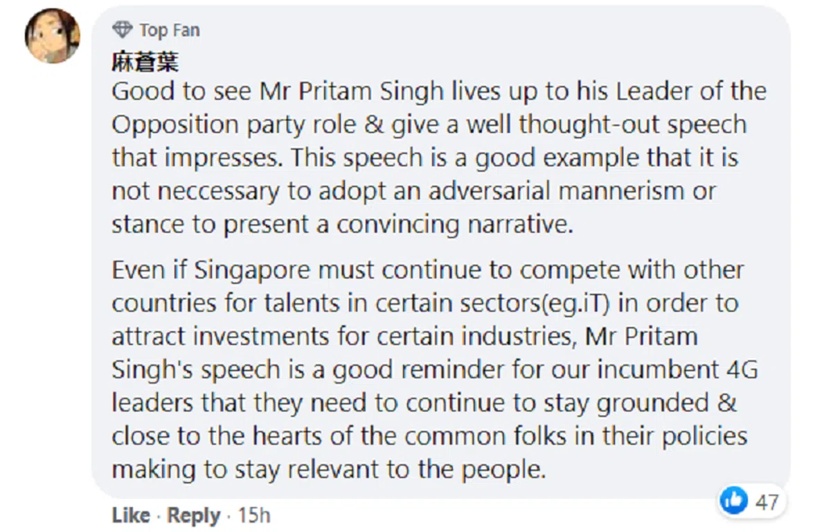 不少网民都认为这位反对党领袖言之有物,这就是新加坡应有的反对党素质。