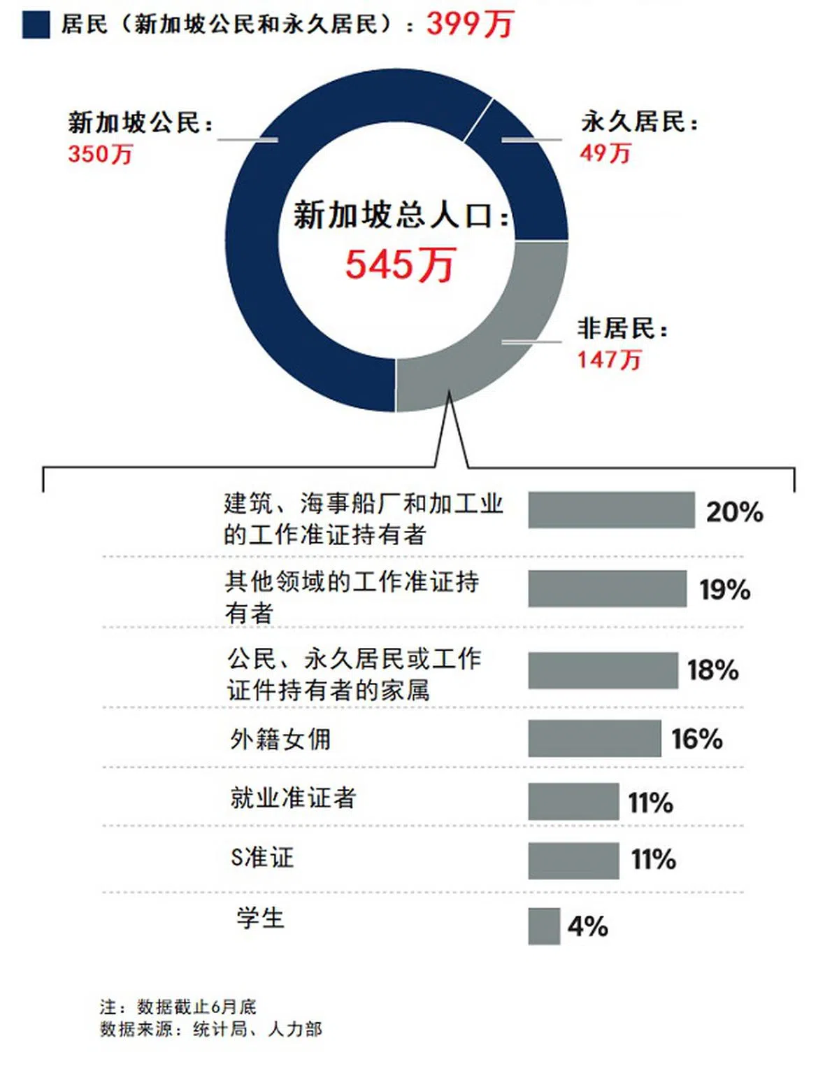 截至今年6月,新加坡总人口约有545万人。