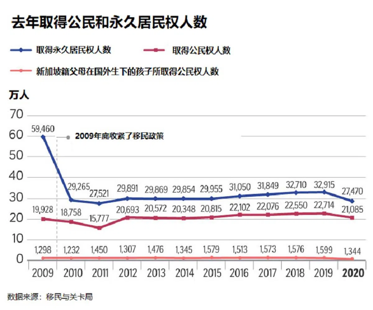 因疫情缘故,去年获得公民权的人数有2万1085人,当中1344人是新加坡籍父母在国外生下的孩子。