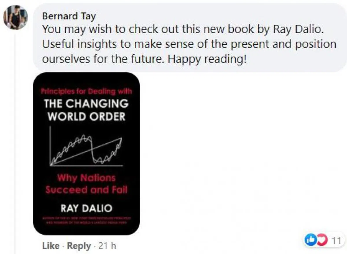 至少这点可以看出,作为一个政策制定者,黄循财是与时俱进的,而且涉猎广泛。读书之余不忘与民分享,显示第四代领袖正努力营造一种亲民形象,接地气!