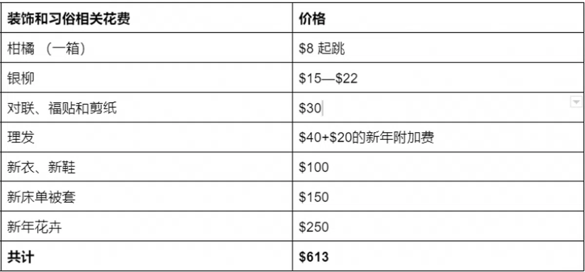 如果你只简单的买些柑橘来拜年、用一些福贴来装饰家里,剪个头发以及买新衣,200元左右就能搞定。