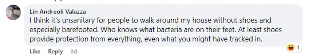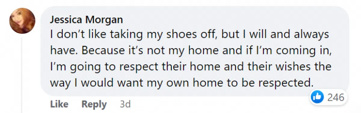 不过,大多数网民都不买账,直批作者这么说太无礼了!即使自己多不愿意脱鞋,到别人家作客,都应该尊重别人家的做法和意愿。