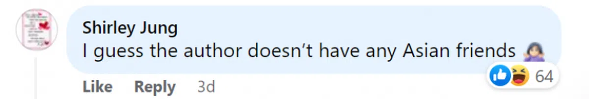 有亚洲人留言说,被作者这番言论严重冒犯到冒火。