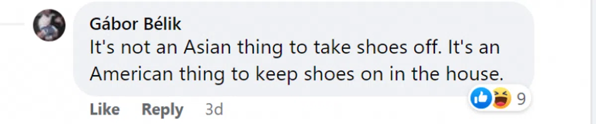 一些网民也点出,在家里脱鞋或穿鞋是一种文化差异,认为作者应该是没有亚洲朋友。