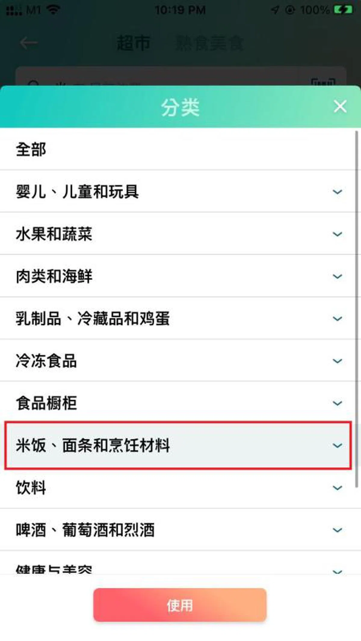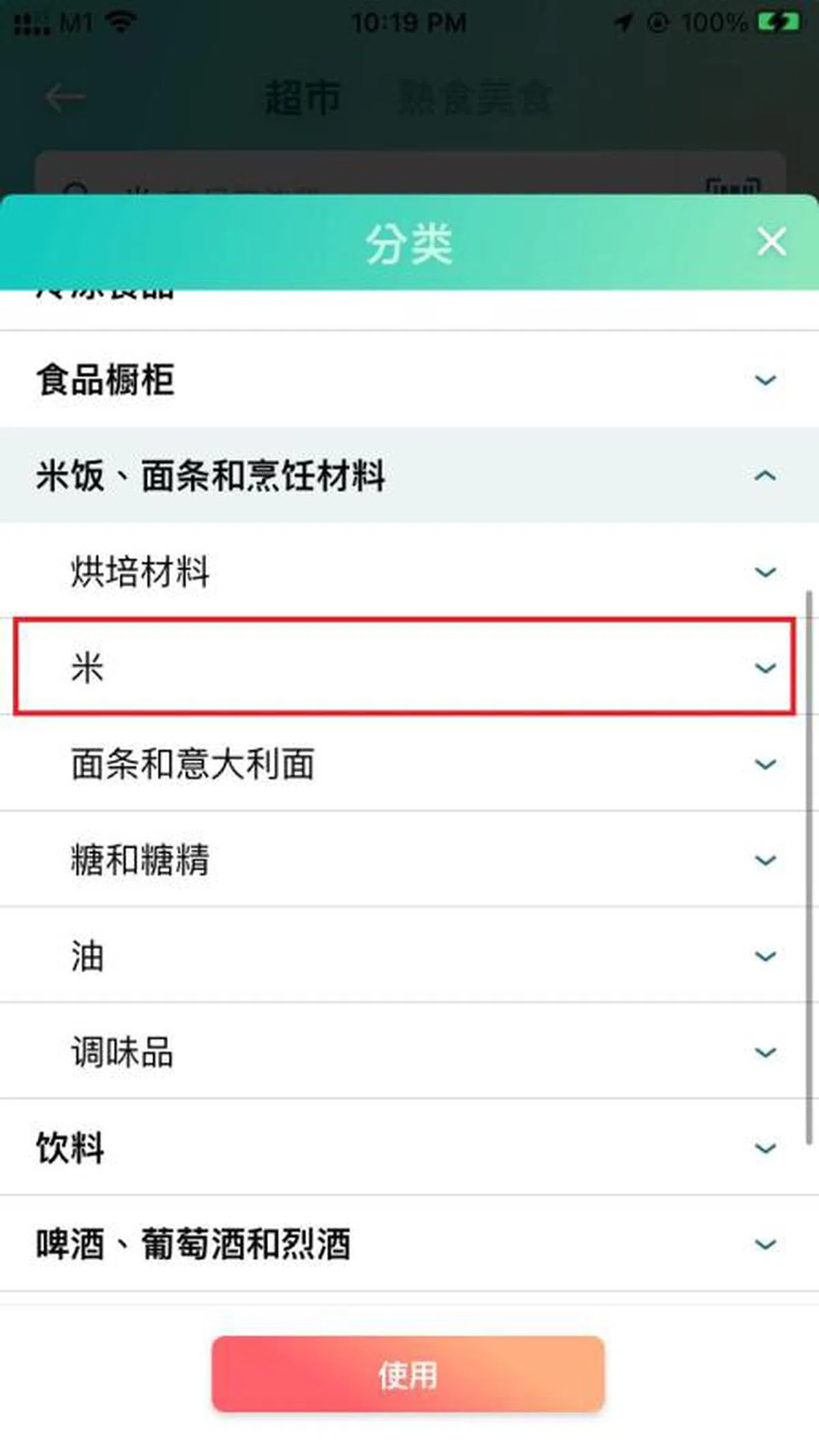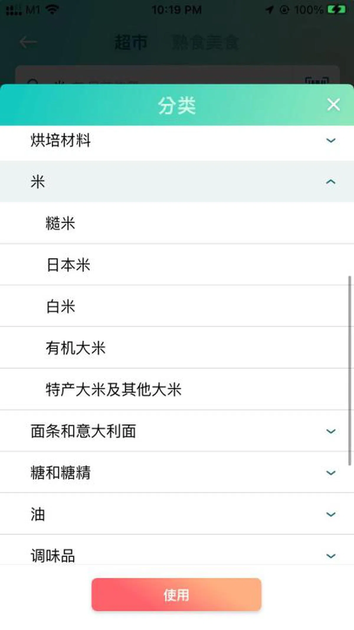 点选其中的“米”,就能进一步选择你想进行比价的是糙米、日本米、百米、有机大米,还是特产大米或其他大米,最后点击“使用”即可。