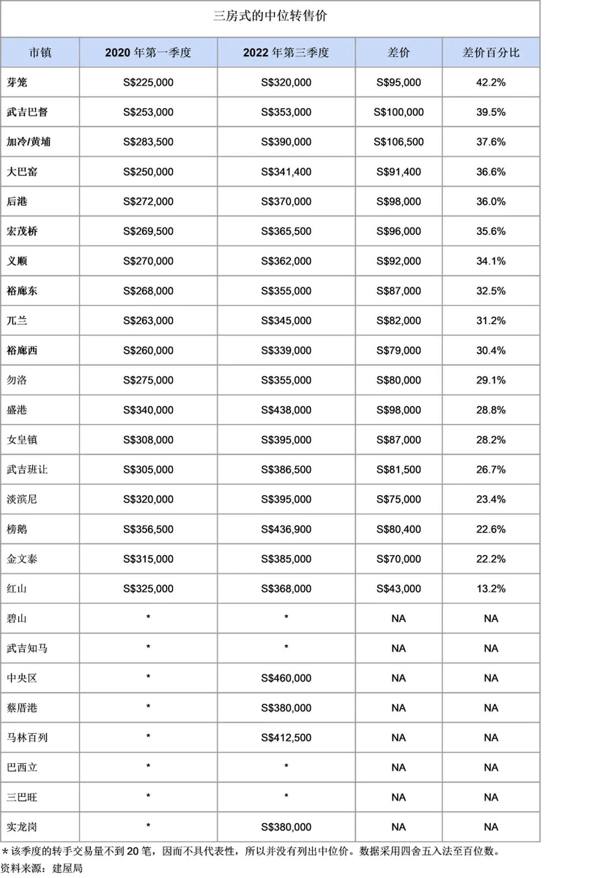 建屋发展局的数据显示,自2020年第一季度(在最近的房地产热潮之前)以来,一些非成熟区组屋的转售价格中位数已上涨超过40%!