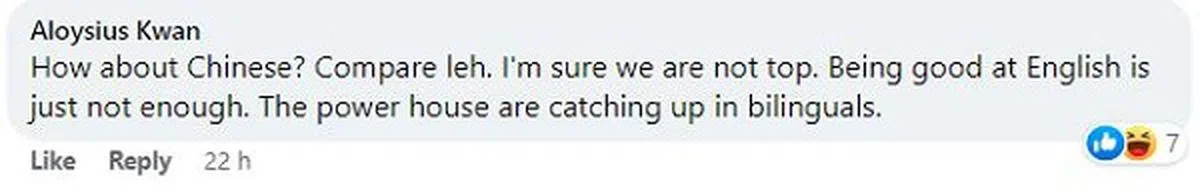 有网民认同说,论及Singlish的精通度,新加坡确实能称霸。至于英语的精通程度嘛,他不认为水平有高到可以在亚洲居冠。
