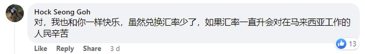 也有网民分享,马国同胞的日子能因此过得好一些,是自己“变相减薪”却依旧感到快乐的原因。