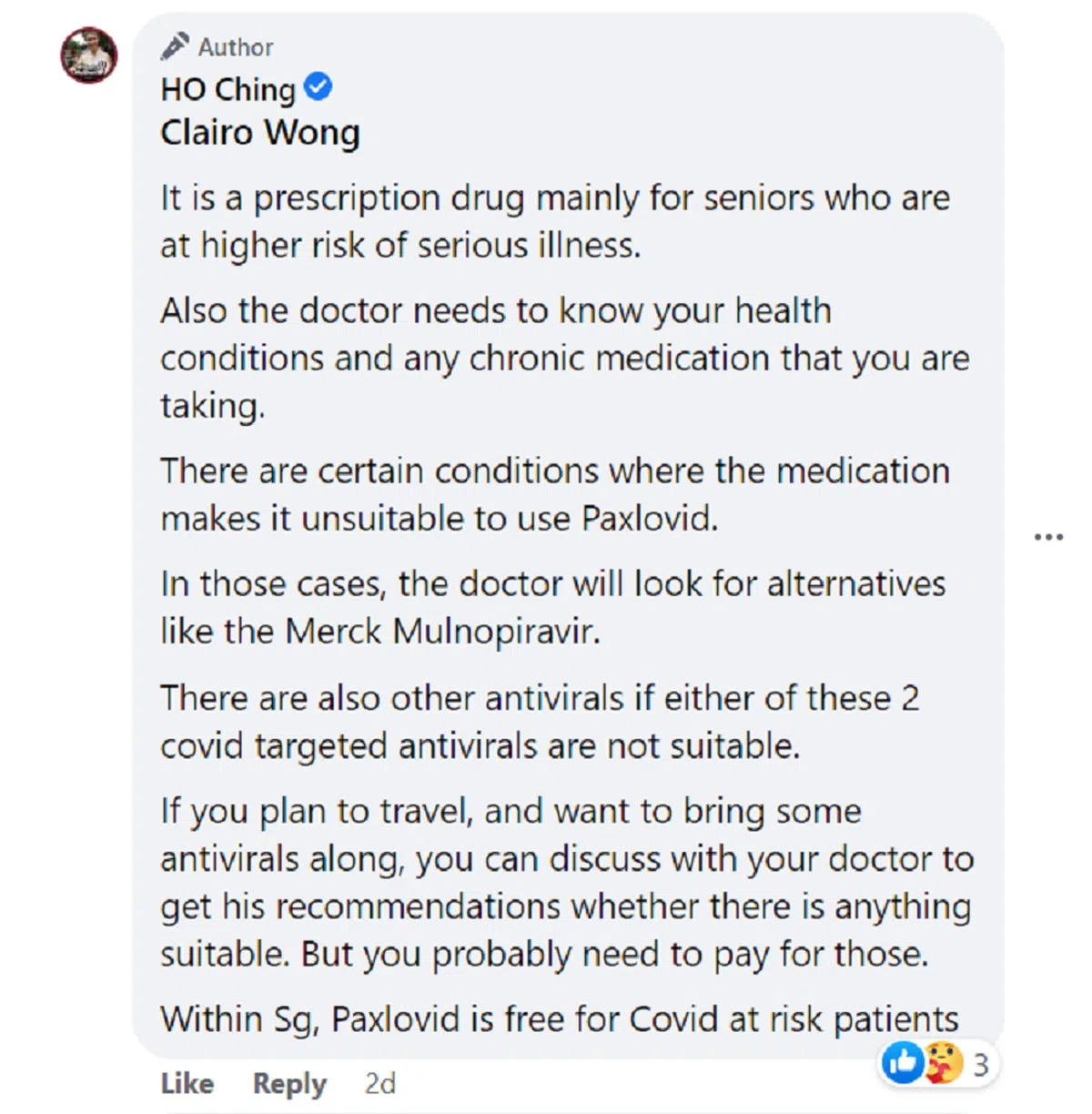 不过在新加坡却是免费的!患者只要符合高风险群体,卫生部暂时会帮着承担药费,但会适时检讨这款药的收费政策。