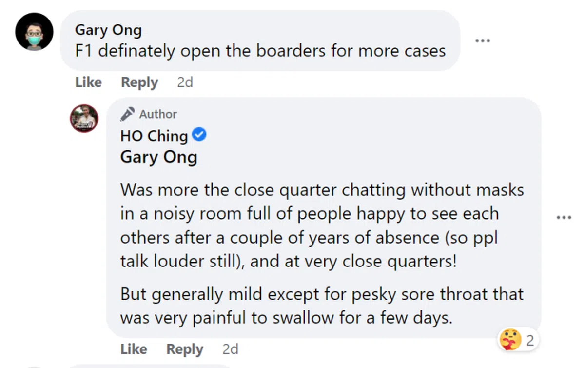 有网民在总理夫人的贴文留言指F1赛事是冠病滋生地,不过她并不完全认同这点。