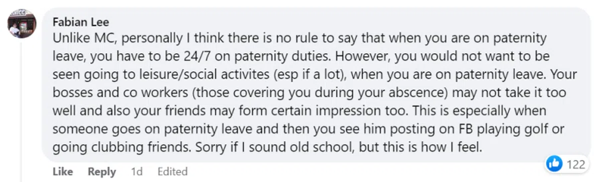 然而,还是有相当多的网民,认为父亲在休陪产假时不应该有太多休闲活动。