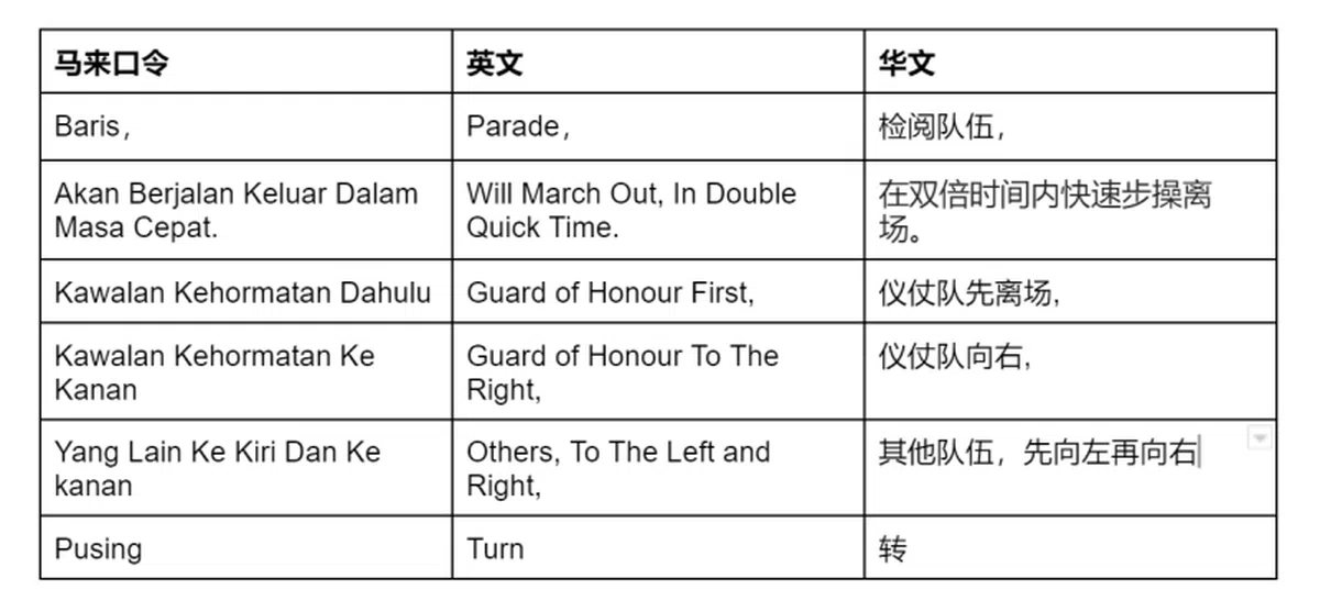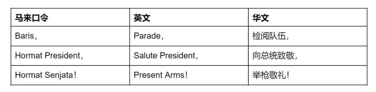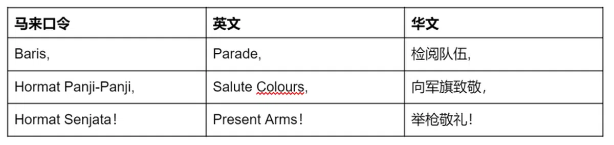 当检阅礼司令官以马来语念出一连串又快又长的口令时,那些不熟悉军中用语的蚁粉,听到这些叽哩咕噜的口令是不是满头雾水?