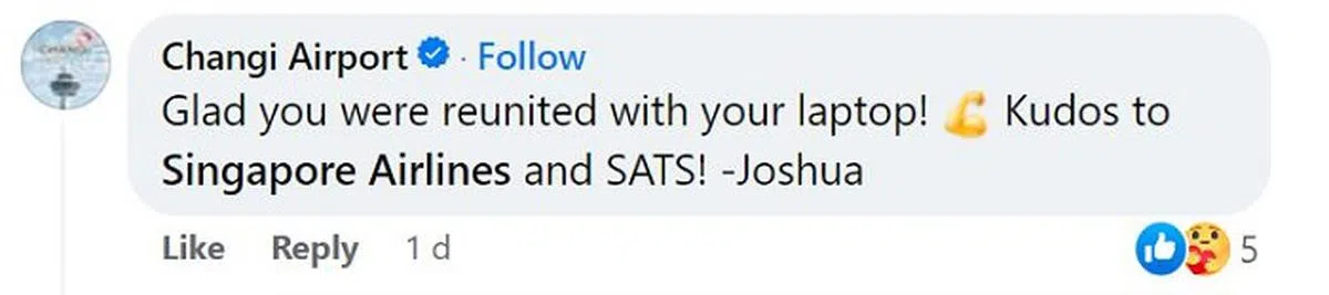 男子感谢新航和樟宜机场助他寻回笔电,贴文引出多人分享“失物”体验