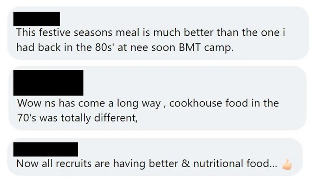 有一些网民赞叹,现在的新兵实在太幸福,每逢佳节还有精心烹煮的伙食,卖相不错且有营养,与70年代或80年代的军人相比,无疑更“好命”。