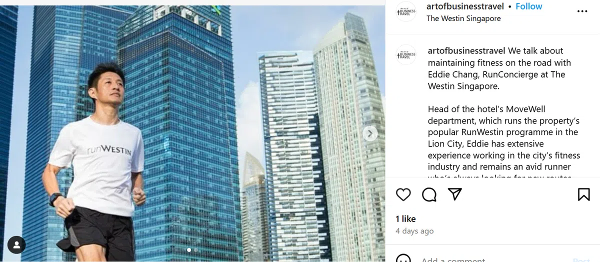 詹修权是威斯汀酒店(The Westin Singapore)的跑步礼宾员(RunWESTIN Concierge),专门负责带入住酒店的顾客晨跑。