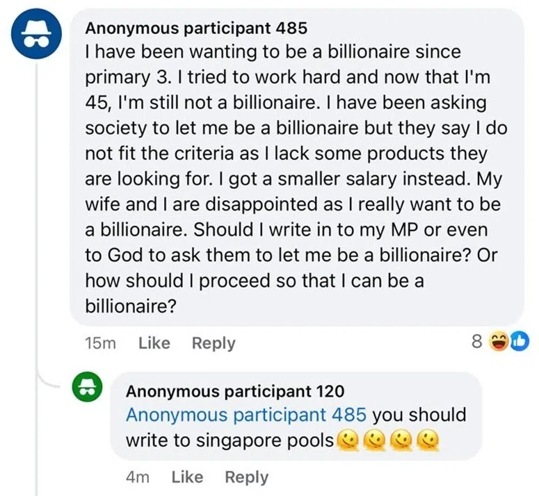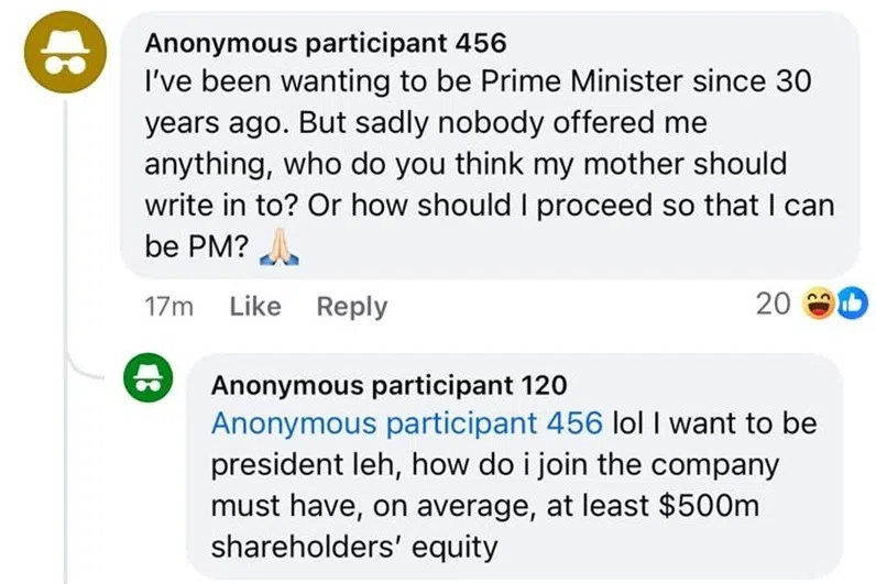 另一位网友写道:“我想成为国家总统,要怎么加入一家三年股东权益平均超过5亿新元的私企,并当上最高执行职位啊?”