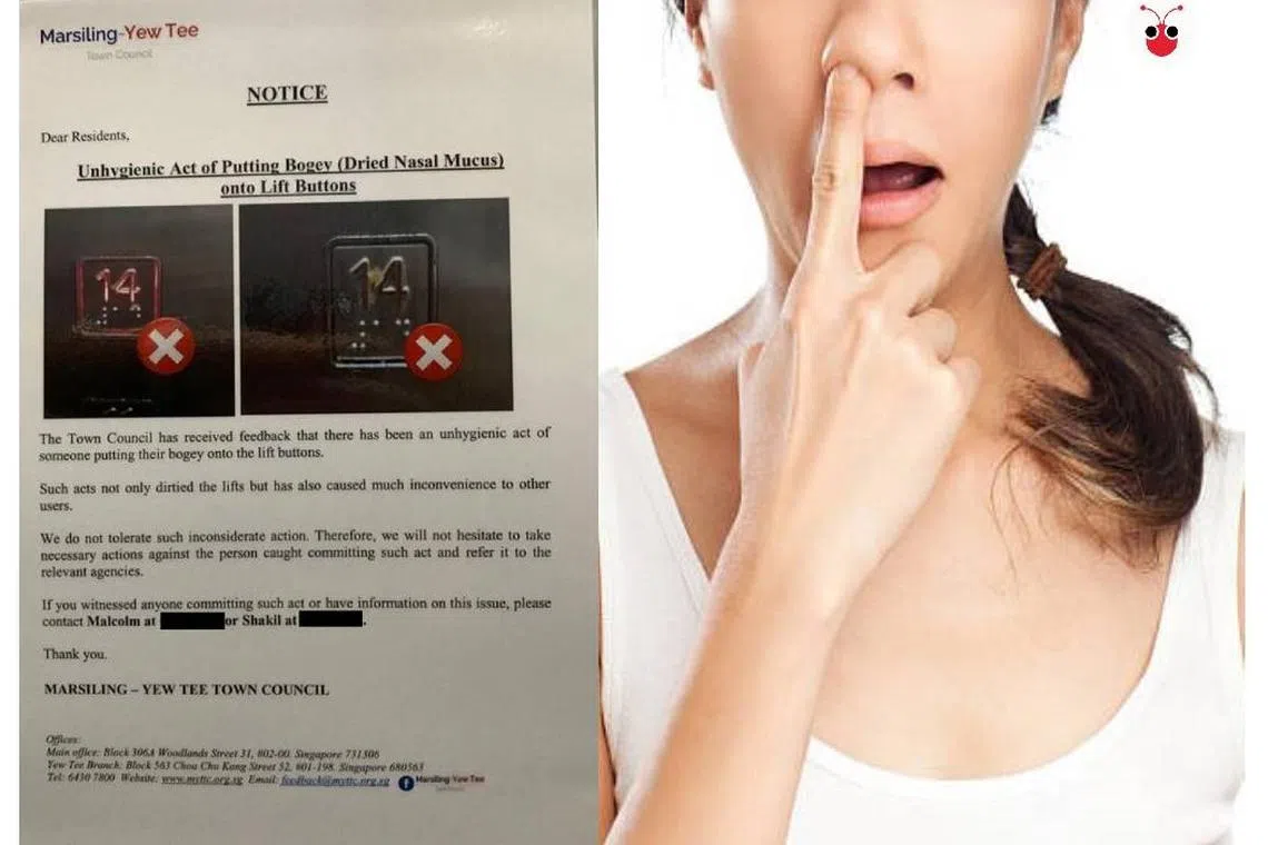 马西岭组屋电梯按钮黏着鼻屎,市镇会警告将对付“鼻屎人”