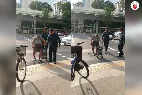 老人尿失禁弄脏裤子 老外扶他过马路还买纸内裤送他