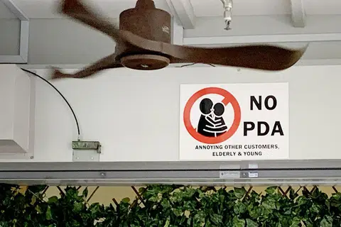 吃饭还要吃到嘴对嘴 牛车水这家餐馆贴告示禁止食客亲热!