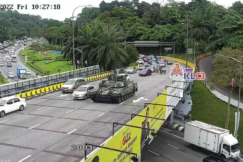 坦克在吉隆坡路上抛锚 网民:幸好不是发生在马国国庆庆典上