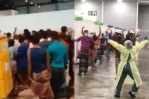 这头客工蜂拥领餐视频引热议 那头客工跳舞视频因未经授权被调查