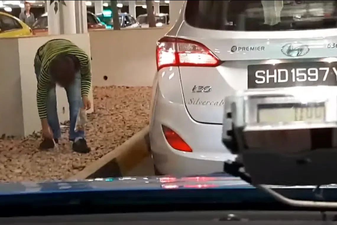 好心女司机闲不下来 候客时弯腰捡垃圾