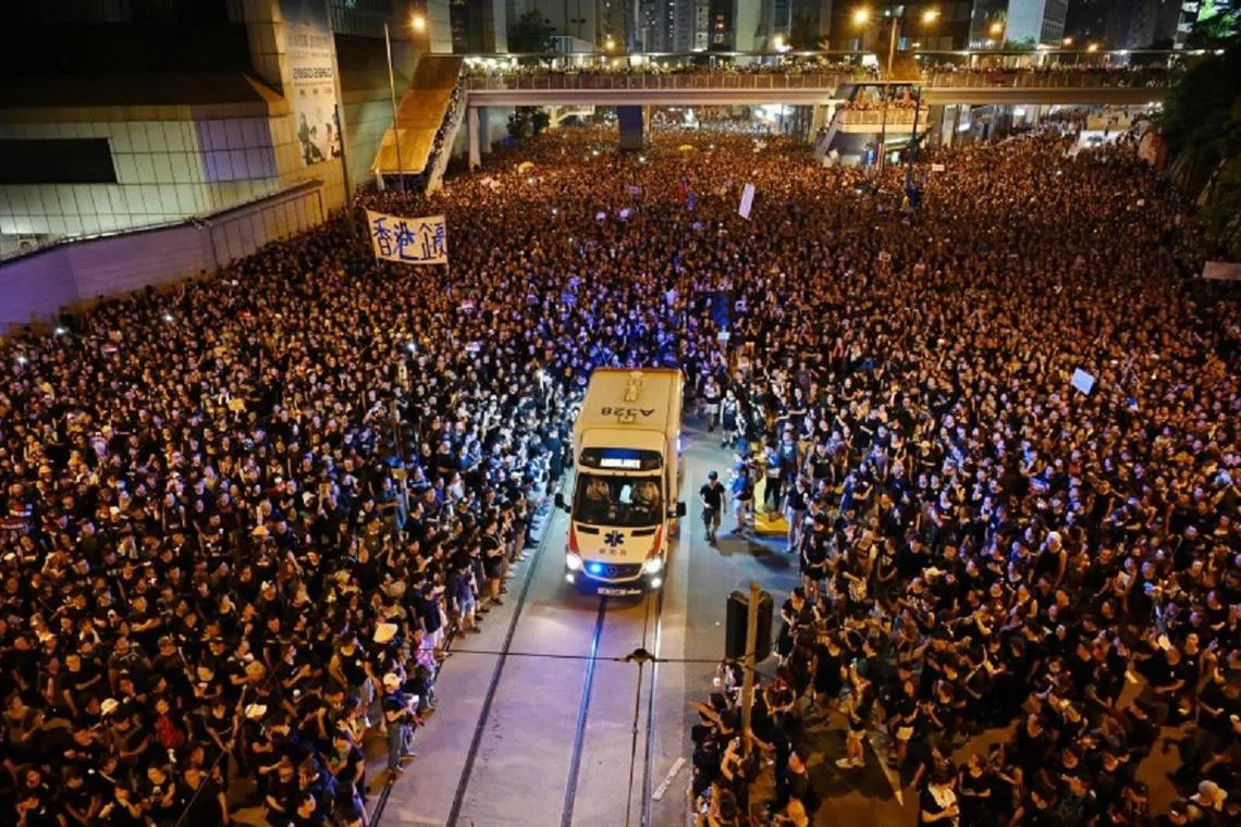 反送中游行动容一幕 示威人潮为救护车开路