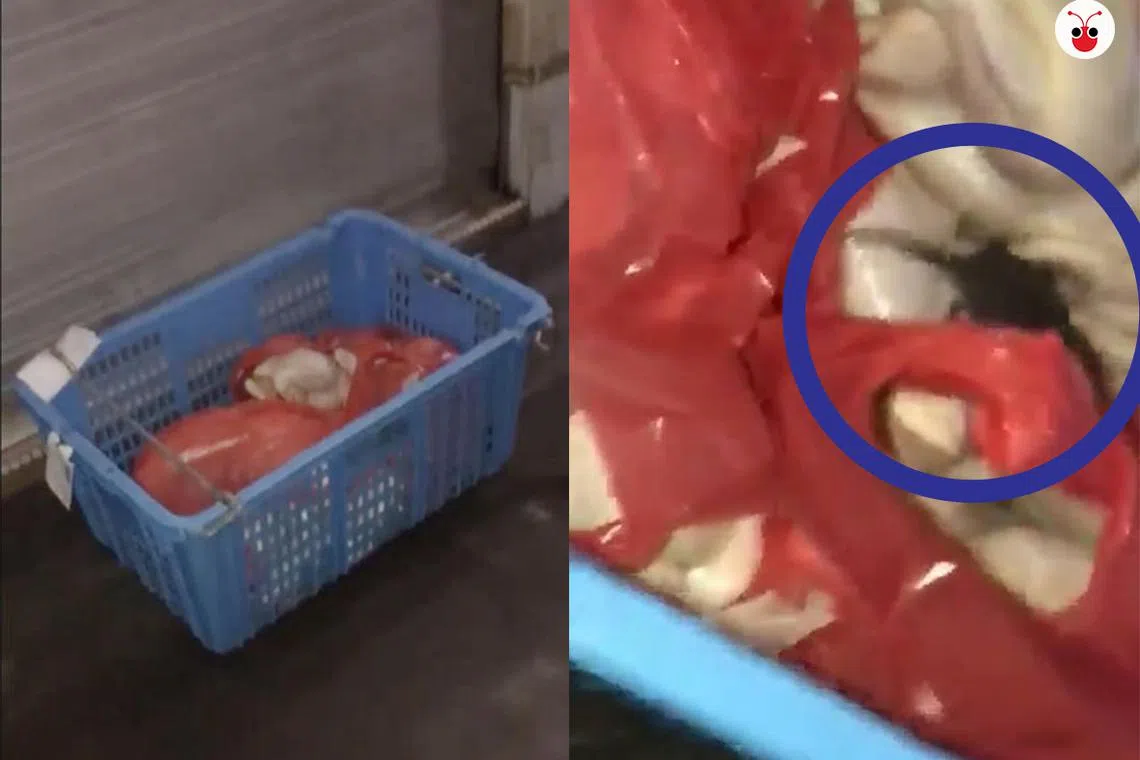 老板还没开档一大篮生鸡搁地上 老鼠捷足先登窜进鸡胸腔内啃食