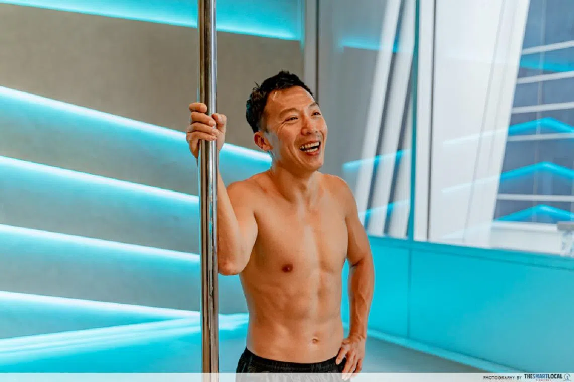 钢管舞并非女生专利 这位45岁狮城男教练跳得游刃有余