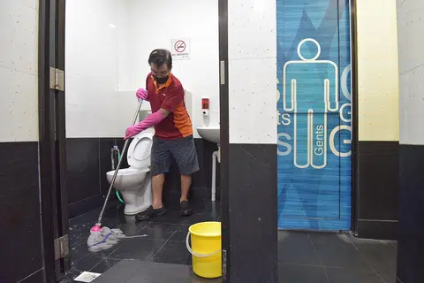 马桶谁不会洗? 这样想就错了,在新加坡当厕所保洁员得先上课