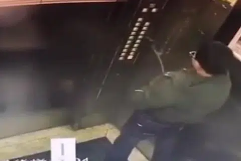 冲着电梯按钮撒尿 中国男孩作茧自缚受困电梯