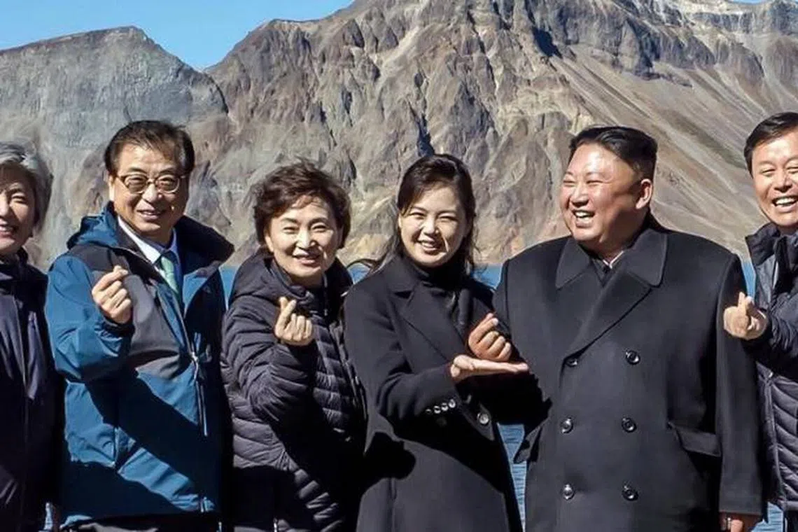继特金会惊世自拍后,金正恩手比心形扮韩星