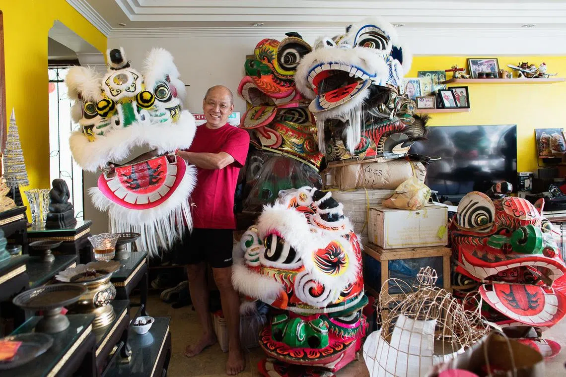 新加坡五颜六色的舞狮 多出自这名全职狮头扎作师傅之手