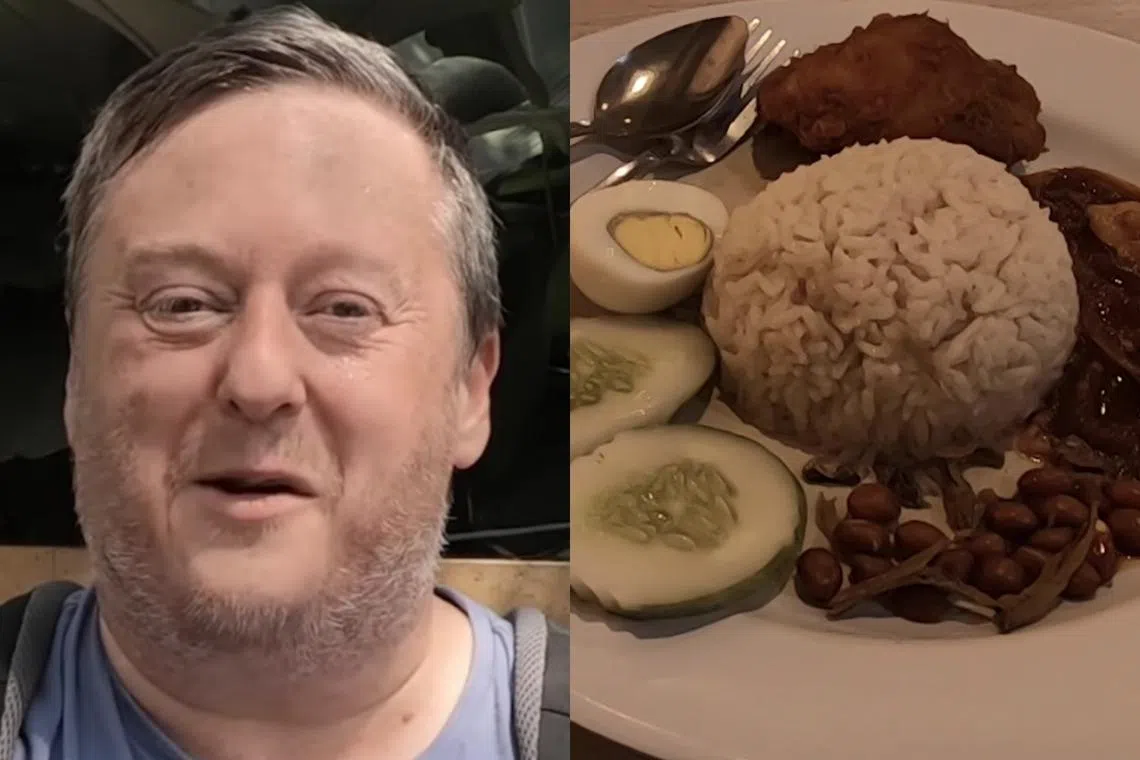 英国网红千里迢迢飞马国吃椰浆饭 过境樟宜机场也意思意思尝了