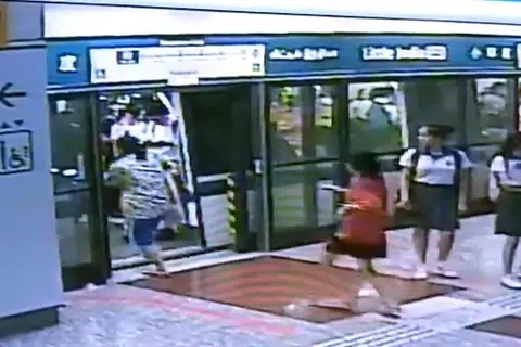 徒手掰地铁门其实不成功,大妈据说为追上自闭症姐姐情急挡车门
