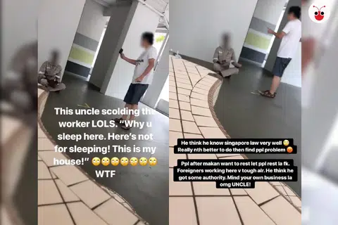 客工在组屋底层休息 遭大叔破口辱骂:这是我的家!你不能在这里睡觉!
