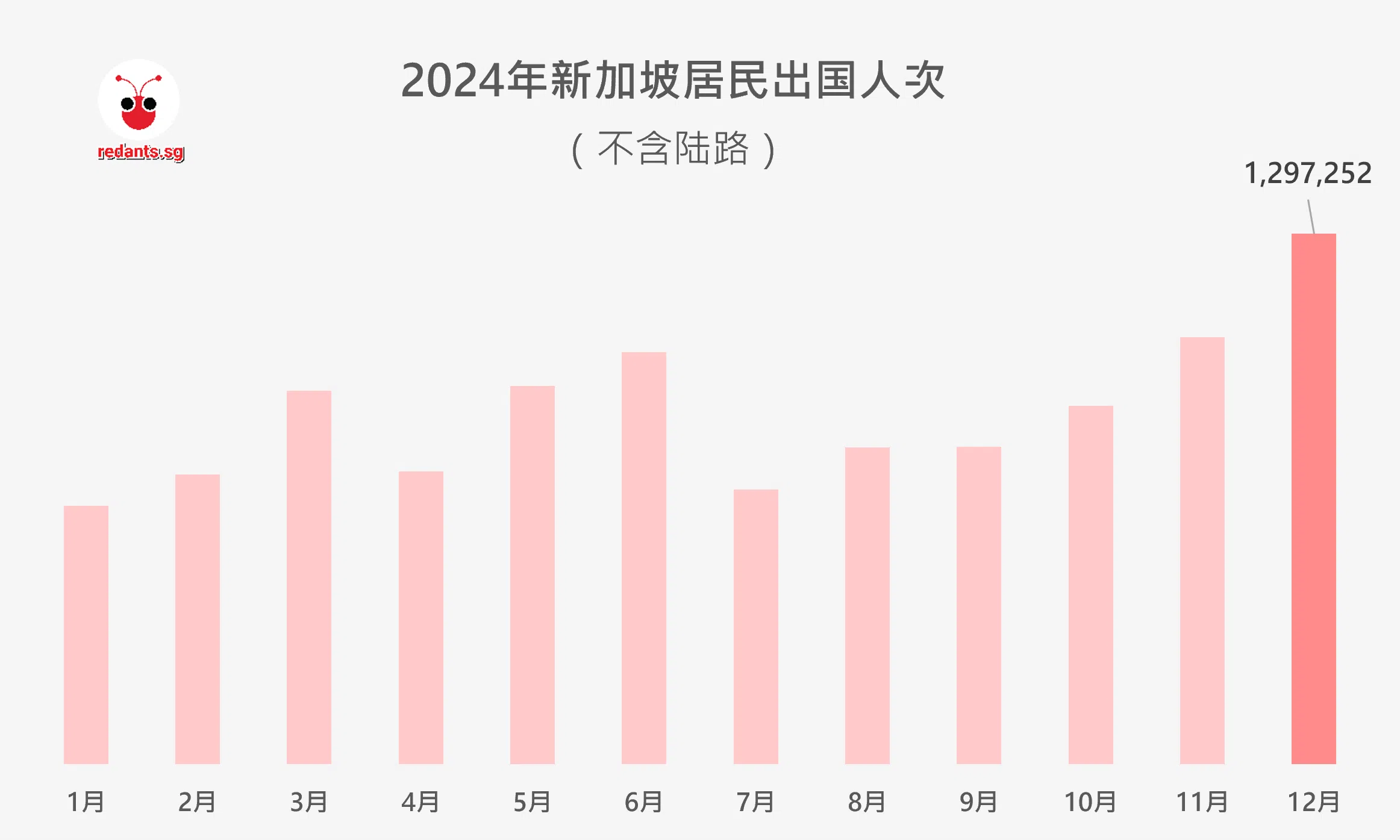 新加坡统计局的数据显示,去年12月新加坡居民的出国人次高达130万,远远抛离全年每月平均的约86万人次。