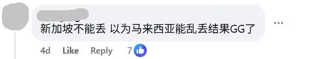 “在新加坡不能丢,以为到了马来西亚能乱丢,结果GG(指完蛋了)。”