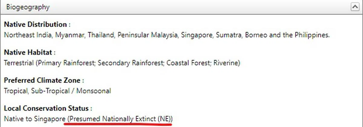 据国家公园局Flora and Fauna Web网站显示,富贵红是新加坡土生土长的物种,已被列为是“假定在全国范围内已经绝种的物种”。此类植物在新加坡范围内都是由人工栽培,几乎找不到野生的。而且,新加坡植物园2015年成功申遗,成为我国首个被列在联合国教科文组织名录中的世界文化遗产,这颗富贵红又恰好是生长在新加坡植物园,当然得到 “高规格”待遇。