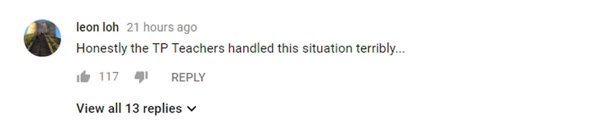 当然,除了学生,不少网友也对老师的处理方式表示不满意。有YouTube网友就看了该视频,对老师处理事情的方式感到失望: