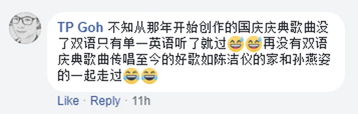 英文平台的网民也说:“我不知道是不是只有我这样觉得。原来的版本让我感觉未来充满了光明,所有生活在新加坡的人都能取得成功过上好生活。可是这个版本……感觉就像我们即将要面临一场经济大萧条,只不过用Sam Smith的曲风唱出来。”