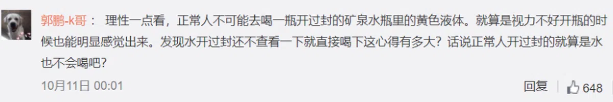 对此,许多网友都一边倒,指责孙先生太粗心,怎么敢喝开过封的矿泉水?